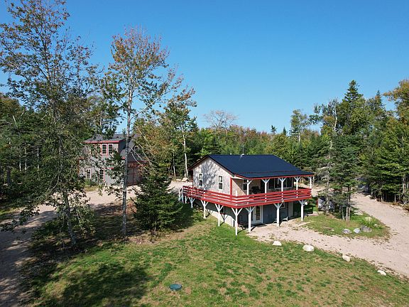This sweet cabin has it all. Tucked into the Maine woods atop a hill with winter views of Little Kennebec Bay, ocean access is only steps away. Once a summer cabin, the home was insulated and upgraded, with a full basement and central heat for cozy, affordable, year-round living. The main level offers all essentials: open concept living/dining area with Lopi wood stove; updated kitchen; two bedrooms; and full bath. The sunny living space opens onto a covered deck, perfect for relaxing and enjoying the natural surroundings and ocean breezes. A walkout basement offers easy access to a full laundry, storage space and a finished room with a picture window offering flexible space for a home office or project area. This property also features a huge, two-story barn built in 2016, with oversized garage doors, industrial shelving and plenty of room for vehicles, boats, RVs, and more. On the second level, a heated studio with high ceilings, lots of light, a deck and separate entrance affords potential for guest quarters or an income producing rental. The circular gravel driveway and underground power provide easy access for any vehicle to the cabin, barn and garden shed. Duck Cove is a quiet, close-knit, wooded coastal community with a mix of year-round and seasonal neighbors. Residents enjoy boating and beach combing via common shore lots and a boat launch. Roque Bluffs State Park, with its highly acclaimed sand beach along Englishman Bay, fresh water swimming pond and hiking trails is only a few miles away. Numerous other outdoor gems are easy day trips, including the stunning Bold Coast Trails, Down East Sunrise Trail and Acadia National Park. While it feels remote, this beautiful homestead is minutes from all amenities. Nearby Machias is the commercial, cultural and governmental center of Maine's easternmost coast, and includes a hospital and university. A perfect forever home...cozy cabin, spacious barn, wooded oasis and ocean access! Seller concessions available.