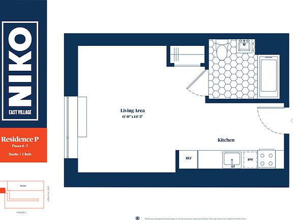 Tenant Fees Disclosure We are committed to providing clear and transparent information about all fees associated with renting our apartments. Please review the following disclosures regarding potential fees: Broker Fee: No Broker Fee Broker fees varysometimes brokers charge fees, sometimes they do not. Any broker fees will always be clearly disclosed upfront. Application Fee: $20 A non-refundable application fee may be required to process your rental application. Pet Charges: $0 (if applicable) Pet fees or deposits may apply and will be disclosed prior to signing a lease. Amenities Fees: $100 Some amenities may require additional monthly fees, which will be outlined in your lease agreement. Other Fees: Any additional fees related to tenancy will be disclosed before lease signing. Thoughtful Alcove Studio Home. Curate your East Village life at The Niko! With thoughtful layouts and highly designed kitchen and bathroom finishes, every detail at the newly constructed Niko has been carefully considered. All units feature oversized windows with solar shades, white oak wood flooring, quartz countertops, stainless steel appliances and Grohe fixtures. Select units offer private terraces, generously sized walk-in closets, elevated ceilings and washers, and dryers. The Niko also offers residents contemporary amenities that include: - A lush roof deck with BBQ area and lounge seating - Lounge with a media center and workspace - Fully equipped fitness center with outdoor access - Second-floor terrace - Part-time attended lobby with concierge services - Live-in Super - Package room with cold storage - Bicycle storage The Niko defines modern downtown living. It is perfectly situated for those looking to take advantage of all the East Village has to offer: trend-setting restaurants and cafes, world-famous nightlife and an impressive art scene. East River Park, with its waterfront bike and running paths, basketball, soccer and baseball fields, and playgrounds, is just a block away. Enjoy river views while riding your bike along the East River Promenade, or play chess, join a basketball game or take your dog to the dog run at Tompkins Square Park. The famous East Village community gardens populate almost every block, making it easy to decompress from the hum of the city. Transportation is plentiful walk to the subway, hop on a bus, grab a City Bike across the street or easily get to the Financial District in a car share via the FDR. Approx 20 minutes from NYU and the New School. - All photos are for illustrative purposes only showcasing the model units. Equal Housing Opportunity Visit our website at The Niko East Village