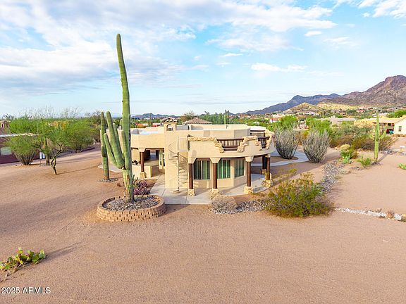 This property is your personal piece of ''Heaven''! Stunning views of Superstition & Goldfield mountains, your own private desert retreat & 100% handicapped accessible. This immaculate home, with soaring 10' ceilings & windows affords a great room floor plan & a kitchen designed for a gourmet chef w/upgraded cabinetry and granite counters. The home is appointed with a warm, custom paint pallet, and travertine flooring through out. Don't miss the guest casita that can be used as a mother-in-law suite, guests or home office. Covered porches wrap this home w/view decking! If that isn't enough- room for all your cars & off road vehicles in the massive1200 ft garage. Couple that with the privacy of living on a 60,000 sq ft+ lot! All this and more. You will not be disappointed.