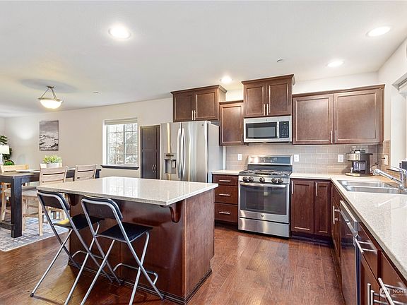 This move-in ready gem is nestled in the desirable Cordata neighborhood and is eager to make your acquaintance! As you enter the front door, the heart of the home draws you in, and the open main living area flows effortlessly, creating a perfect space for entertaining. Stay comfortable all year round with air conditioning in the summer and a cozy gas fireplace for those chilly nights. This home provides the ease of main-floor living! The primary bedroom with ensuite is found here as well as laundry, with two additional bedrooms and a bathroom above. The back deck and easy-to-maintain yard provide space to unwind and welcome a friendly neighbor's wave. Convenient proximity to the new Cordata Park, trails, schools, dining, shopping, and I-5!