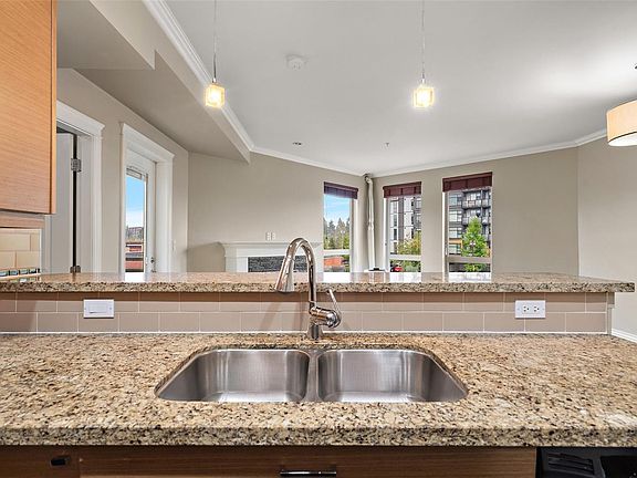 Discover this stunning 2-bedroom, 2-bath unit located in the heart of Langford. Comes with a secure underground parking stall and a storage unit, this home combines value, comfort, and convenience. Brand new dishwasher and microwave combination were just installed The 8 foot 9 inch-foot ceilings, with oversized windows flood the space with natural light, beautiful hardwood floors and carpeted bedrooms The kitchen features granite countertops, a stylish eating bar, an open dining and living areas—perfect for entertaining or simply relaxing at home. Unwind on your private balcony or retreat to the spacious primary bedroom that fits a king-size bed. A custom walk-in closet and ensuite with a tub make this suite a true retreat. Steps to all amenities , shopping, parks, and the new University