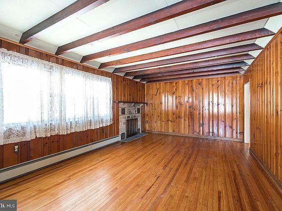 Escape to peace and quiet in this cozy and comfortable 3 bedroom ranch house. Walk into an inviting large living room with a wood-burning stone fireplace, triple windows for natural light, exposed wood beams in the ceiling, beautiful hardwood floors, and real wood panels. Bright and cheerful informal dining nook with bay window. The kitchen has wood cabinets, neutral countertops, and a vinyl floor. Electric oven and double sink. The main bedroom has a double closet and hardwood floors. 2 additional bedrooms have hardwood floors. 3rd bedroom would make a fantastic office with door to laundry room. Hall bath has cast tub and tile. Laundry room on main floor, used to be an additional garage adding 162 sq ft to interior living space could double as a mudroom. Heated oversized 2 car garage with a fireplace, it also has 2 people doors, 1 in front, 1 in back. Full basement is begging to be finished again, it's a great space with a beautiful stone fireplace. Bilco doors and utility sink in additional storage area of basement. floored attic with pull down stairs. Shed. Lot is 3.5 acres, open area around house and lots of wooded grounds. Amazing area, quiet road minutes from Green Lane Park which has lots of activities including hiking, kayaking, fishing, disc golf, tennis, and more! Don't wait this is a prime location!