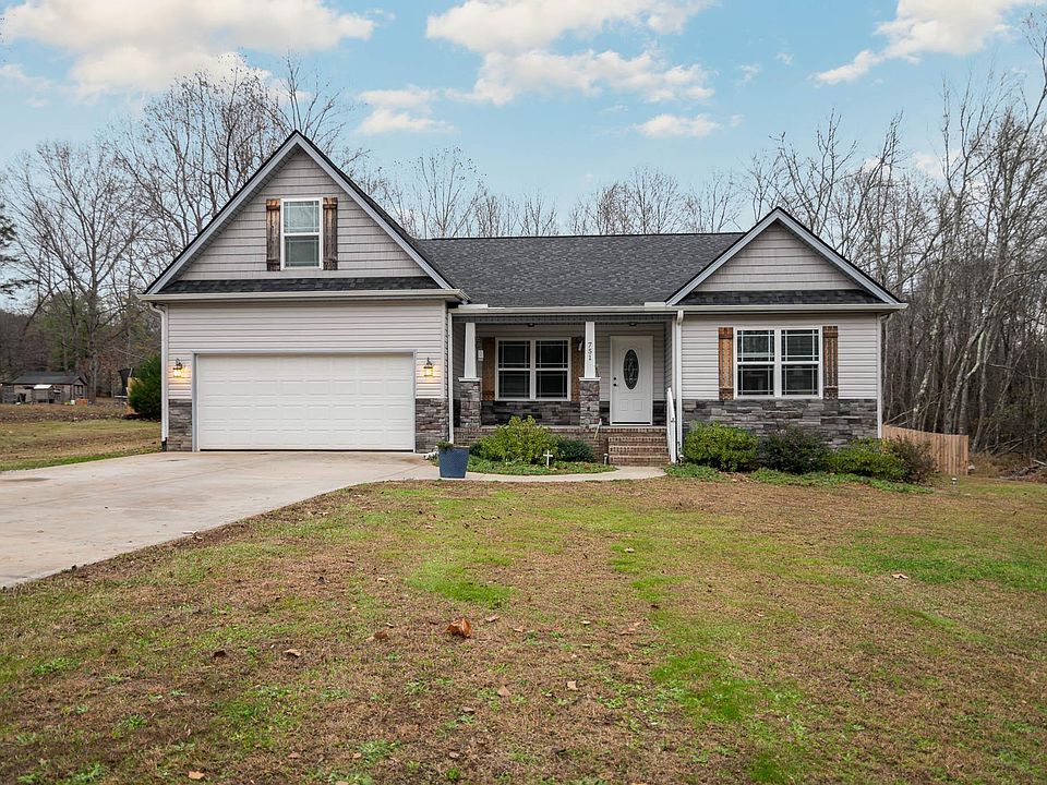 Welcome to 751 Jordan Creek Road! This 3 bedroom 2 bath home sits on over an acre and a half in Lake Cooley Landing. Only a short walk to the lake! As you enter the home you are greeted by REAL hardwood floors throughout the main living area. To the left, as you walk in the front door you have your dining room and to your right, you will find a spacious home office. This home boasts an open floor plan that joins the gorgeous kitchen and living room, which makes a great family/entertainment space. In the kitchen, you have custom soft-close cabinets and drawers. In addition, there are granite countertops, built-in stovetops, built-in double convection ovens, a built-in microwave, a dishwasher, and a large walk-in pantry. In the living room, you have a family-friendly gas fireplace to keep you cozy. To the right of the living room, you'll find an upgraded full bathroom that sits between two identical spacious bedrooms which have generous closets and new carpet. To the left of the living room is a large master bedroom and bathroom with a double sink, a huge tiled walk-in shower, and a spacious walk-in closet. But wait, there's more! This home also has a laundry room and a two-car garage which has a bonus room above it that could easily be converted into a fourth bedroom. The backyard is fenced-in with a screened-in porch for you to enjoy and entertain your guests. Not to mention, this home only has one immediate neighbor, plus the convenience to Spartanburg, Greenville, and Asheville via 85 and 26 highways is one of the many reasons to call this home yours! Schedule a showing today, this home will not last long!
