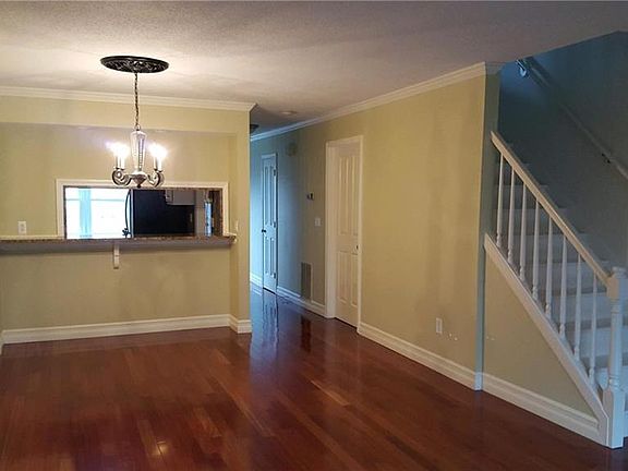 Beautiful townhouse in great condition placed in one of the best locations in the complex. The Foyer sets the tone with vaulted ceiling and subtle architectural pillars. Brazilian Cherry hardwood floors carry you throughout the main floor to an expansive living room/dining room combo fireplace, southern exposure, accent lighting, and pass-through to kitchen. Slider out to deck on south side provides optimum sun, a great amount of privacy and view looking out to the woods. Kitchen is finished off perfectly, with the same gorgeous hardwood, granite counters and backsplash, stainless steel appliances & generous lighting. Both bathrooms are also remodeled with tiled floors and granite topped vanities. Laundry located on 2nd floor, next to bedrooms. Master has dual clothes closets as well as an extra walk-in. All this, located in the Wesleyan Hills community that offers a serene setting with trails, pond and picnic areas.