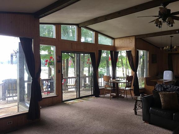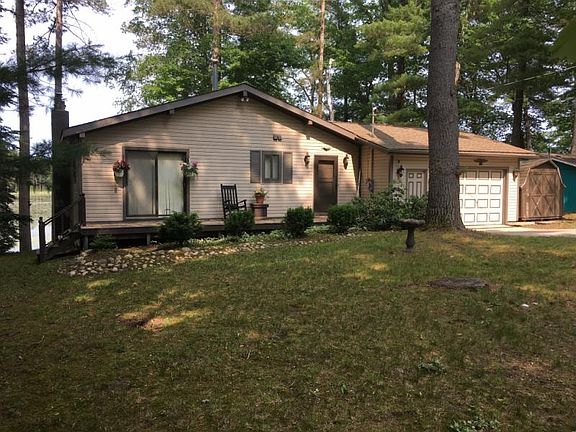 Enjoy life at the lake with 86' of lake frontage on Perry Lake known for great year round fishing. House is situated on a large wooded lot. Main floor offers open floor plan with spectacular lake views, T&G knotty pine walls, Pergo flooring, carpet & wood burning fireplace. Patio doors open to large lakeside deck, perfect for entertaining or sunset watching, loons & eagles are also regular visitors to the lake. Full finished walkout basement, with additional fireplace & 3/4 bathroom serves as 2nd bedroom & family room. The 20x40 garage has doors and both ends for easy access offers ample storage for all the toys. State Land is nearby for easy access to trails for hunting, trail riding & snowmobiling.