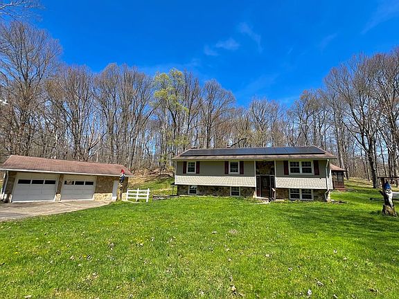 Welcome to “the place to be”! This 4 bedroom, 2 bath home sits on 3.75 acres and offers the perfect blend of comfort and tranquility. This home boasts a well maintained exterior, large yard and solar panels. Little to no Electric Bill!!! The home offers ample living space with a split level floor plan. With 3 bedrooms on the main floor and 1 bedroom downstairs, there is plenty of space for a growing family or those in need of extra room. The backyard of this home is a true retreat, offering a screened in porch as well as a screened in Gazebo. Additionally, the property features 2 detached garages, the one garage has a second floor for additional storage or could potentially be converted into an apartment or guest suite. The property includes a riding John Deere mower and Generator. Be sure to ask for the 3D Virtual Tour.
