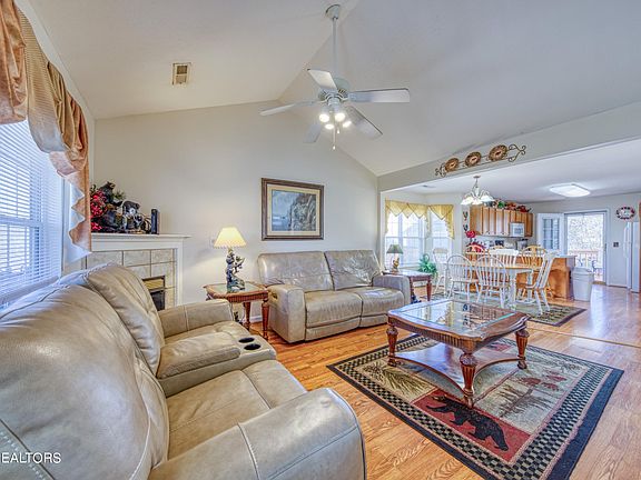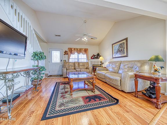 The unassuming front disguises the fact that this is a 4BR/3BA home. There is even a 1 car garage, patio with hot tub, and a recreation room on the walk in level! Awesome as that is you are only one block off the river where you can canoe, kayak, tube and fish. Step inside to find a fully furnished interior with a handicap ramp leading to the back covered deck providing seamless entry to the kitchen. The cathedral ceiling in the great room enhances the spaciousness, creating an inviting atmosphere for gatherings. On this level you'll find the main suite along with another bedroom each with attached baths for optimum comfort. Venture upstairs to discover two smaller bedrooms and a full hall bath, ample space for guests. Storage is plentiful throughout the home, ensuring a clutter-free living experience. The location is not only picturesque but also convenient, with easy access to all that Pigeon Forge has to offer, from entertainment venues to dining establishments, ensuring a lifestyle or vacation filled with fun and excitement. Don't miss out on the opportunity to own this remarkable home that combines functionality, comfort, and a prime location for a truly fulfilling living experience. This property presents a terrific investment opportunity, whether you're seeking a permanent residence or a second home. Its versatile layout, prime location, and array of amenities make it a highly desirable choice for buyers looking for both long-term value and immediate comfort. Priced at the unheard of $230. a sq ft for a 4BR in Pigeon Forge! Schedule your tour today and envision the possibilities that await you!