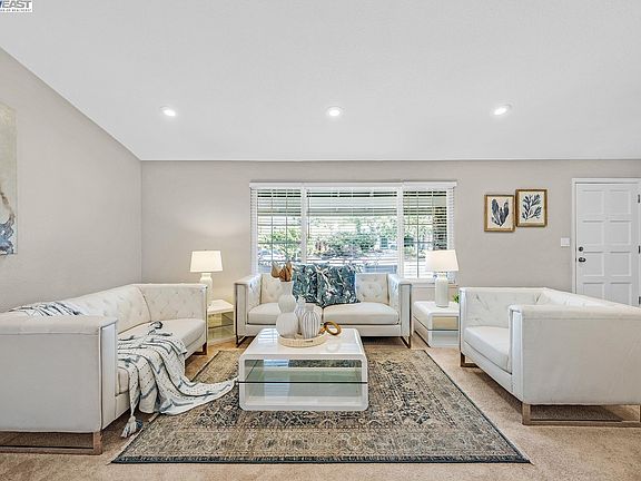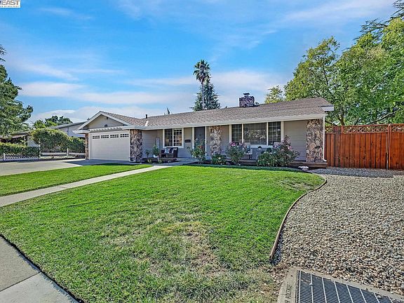 Tranquility at is finest. Highly desirable South Livermore, 5 bedrooms, 2 baths, 2300 square foot single story with attached 2 car garage with roll up door and opener, possible side yard access. Recently updated kitchen with Quartz countertops and backsplash, stainless steel appliances including electric cooktop, microwave, dishwasher, & refrigerator, tile flooring, recessed lighting, wine rack, and eating area. Large living room with fireplace & vaulted ceiling, formal dining room, family room off the kitchen with laminate flooring. Large inside laundry room with washer/dryer, and sink. Composition shingle roof, raised panel doors, dual pane windows. New carpet and interior paint .Ceiling fans, Central Heat and Air. Beautifully landscaped yards with auto sprinklers, play structure, tree house, and shed. Great location. Close to schools, shopping and transportation. O/H Sat/Sun 1-4pm
