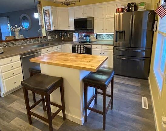 Very well updated 2-story home featuring 3 bedrooms (Potential for 4th bedroom) 3 bathrooms. Two Living rooms. Bathroom on each floor. Triple Stall Heated Garage. Fenced in yard with 2 wonderful decks & a pool.