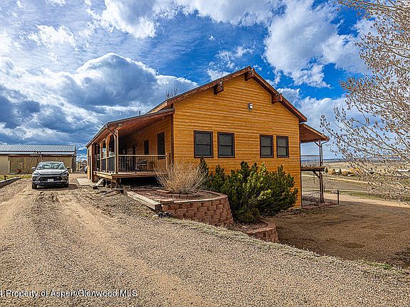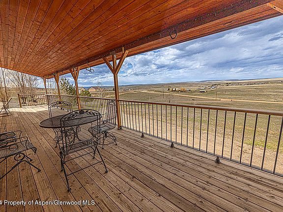 VIEWS from the deck of this custom build home are expansive with 30x50 shop, sitting on 9.54 acres, just minutes from Craig. Circle drive, trees on a drip system and 2 additional storage sheds. Home offers a walkout basement with egress windows, additional kitchen and second laundry room. This space can be easily accessed for a mother in-law suit or guest quarters. The shop has 220 amp, with office space & work room, concrete floor, loft area and large RV door.