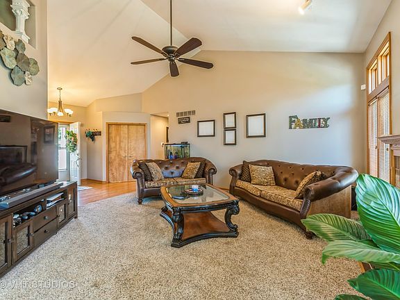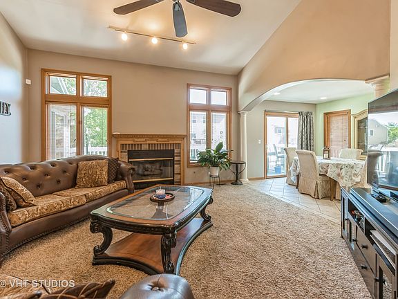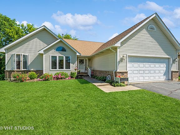 Welcome to this spacious ranch home with upgrades galore! Step inside to discover beautiful oak flooring throughout the upgraded gourmet kitchen, which boasts new stainless steel appliances (oven and dishwasher 2023) including a high-end Subzero refrigerator. The flowing floor plan is perfect for entertaining, featuring a kitchen eating area, dining room, and family room with vaulted ceilings, elegant archways, and a cozy gas fireplace. The extra large master suite offers serene backyard views, an attached, spacious master bathroom, and a walk-in closet. Two additional spacious bedrooms and a convenient laundry room complete the first floor. The full finished basement is an entertainer's dream, currently featuring a full wet bar, movie theater, toy room, office, and recently remodeled bathroom, with endless possibilities for customization. Outside, the large fenced backyard is perfect for summer fun, complete with a sizable deck ideal for grilling and outdoor gatherings. Additional highlights include high ceilings, archways, an open floor plan, new lighting and ceiling fans, a new hot water heater, a new washer, newer roof and gutters, and a Nest thermostat. 3 blocks to the park, .5mi to school, and 1.5mi to Square where you can enjoy shopping, restaurants, movie theater, and the Metra train station. Don't miss out on this exceptional home offering modern comfort and style in every detail!