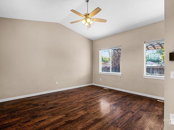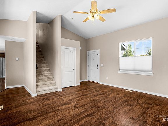 Are you ready to fall in love with your new home? This charming two-story home in a convenient Boise neighborhood offers 3 bedrooms, 2.5 bathrooms, and a gorgeous kitchen with a gas stove/oven, ample counter space with granite counters, and plenty of storage. The living area boasts vaulted ceilings, creating a bright, open atmosphere filled with natural light—perfect for entertaining or relaxing. A dedicated laundry room adds convenience, while the large, fully fenced backyard is ideal for BBQs, gardening, or soaking up the sun. Energy efficiency is a major plus, with solar panels installed to help reduce utility costs; please note that the panels are still financed, and buyers will need to assume the financing. Located close to Boise and Meridian amenities, this home combines quiet comfort with city convenience. Additional highlights include central heating and cooling, ample storage, and an attached garage. Don’t miss the chance to make this beautiful home yours—schedule a tour today!