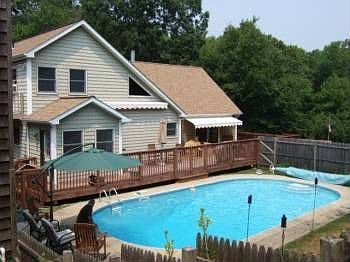This Contemporary Style home offers outdoor entertaining at it's best. Property features an inground pool with wrap around deck, over 2 acres with a pond, antique barn, pool shed and chicken coop. Home has an open floor plan with soaring cathedral ceilings. Wood burning fireplace. Central air. Large Master suite with bathroom, walk-in closet and slider to private balcony overlooking back yard. Gameroom in lower level could be used as guest suite with it's own separate entrance. Mudroom. 2 car detached garage.