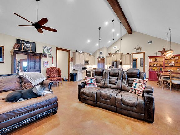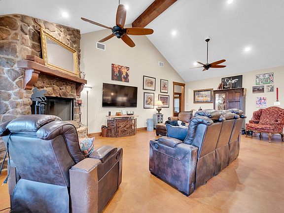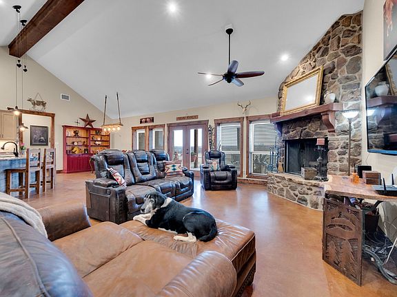 Rare opportunity to own 102+ acres of serene countryside just minutes from Ennis. This stunning property features a spacious 4–5 bedroom home with two en-suite primary bedrooms, ideal for multi-generational living or guests. Enjoy peaceful mornings watching the sunrise from the back patio overlooking rolling land and a 12-acre stocked lake filled with bass, crappie, and more—perfect for fishing and relaxation.