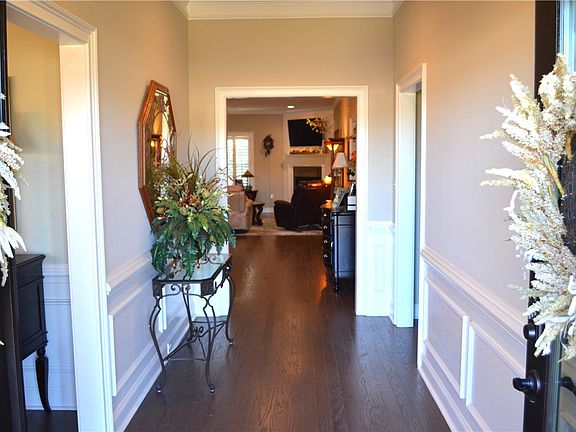 This is an elegant and spacious home all in the convenience of one level! This home features a sweeping great room and kitchen area with a HUGE granite island with plenty of seating space. A separate dining room is located at the front of the house connecting to the foyer entry flowing into the open kitchen and large great room with gas fireplace. The master suite provides a large private space along with a connecting bathroom complete with double vanity, walk-in shower, garden tub and abundant storage space in the large walk in closet. The 3 other bedrooms are on the opposite side of the home. A Jack and Jill bathroom is between 2 of the bedrooms, while the third bedroom has an adjacent full bathroom. There is an all-seasons room with a gas-log fireplace exiting onto a nice deck in the back yard. The yard is gorgeously landscaped and includes a beautiful arbor. Additionally, the home is equipped with plantation shutters, security system, irrigation system, and large 3 car garage!