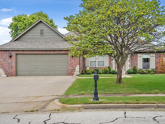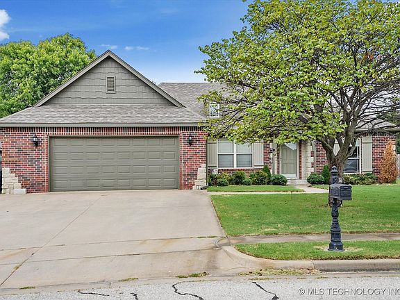 This home is ready for immediate sale! Welcome home to this very well maintained home with open floor plan on huge corner lot! This home features a spacious split bedroom floorplan, perfect for guests or relatives. Walk in to the open living room with fireplace and high ceilings. Kitchen has large pantry and eating nook, complete with granite counter tops. Upscale cabinetry with shelving and drawers for pots, pans and spices. Large dining room perfect for dining or could be a flex room perfect for home office, music room, exercise studio, art room, etc. Master bedroom has raised ceiling and large walk-in closets, double sink, whirlpool bath and separate shower. Entertain on the large back porch in large, private backyard. Oversized 2 car garage. Spacious utility room with deep sink and hanging area. Roof 3 years old with newer exterior paint and some new interior paint. HVAC and hot water heater are newer. Easy access to Hwy 75 within minutes of Tulsa Hills and downtown. Enjoy neighborhood pool, walking trails, ponds and playgrounds! Seller willing to offer concessions for paint, carpet or closing costs with acceptable offer! Assumable VA loan option.