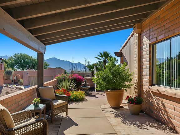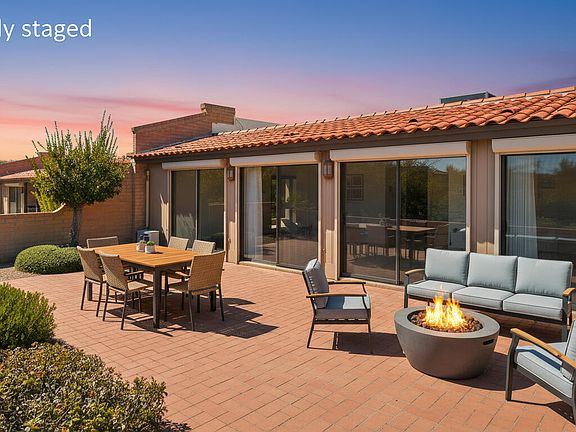 Experience the best of Green Valley living in this immaculately maintained 2,374 sq ft townhome just half a mile from Desert Hills Golf Club. Wake to stunning Santa Rita Mountain views from your back patio-an entertainer's dream with both shaded and sun-drenched patios for year-round enjoyment.The thoughtful floor plan features 2 bedrooms plus a den with Murphy bed, perfect for guests or home office. The kitchen boasts stainless steel appliances, while premium upgrades include owned solar panels, 2019 HVAC with air purifier, whole-house water filtration, privacy sunscreens, and electronic security shutters.This is Southern Arizona at its finest - 300+ days of sunshine, world-class golf, and mountain views from your private desert oasis.