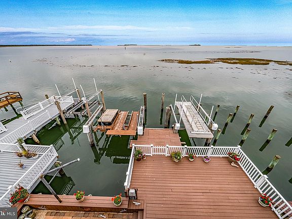 Don't miss this one in West Wildwood. This Single Family home was custom built in 2004 by the builder for the builder.. no detail was overlooked. As you pull up you will immediately notice the pride of ownership. This home has never been rented. The details are stunning from the prairie style windows, to the stone finishes and the shake style vinyl siding. This home has curb and dock appeal. While opening the 2 car garage, you will notice that the garage runs front to back with another garage door leading out the back to the deck. The garage is almost 51 feet and the actual garage portion is 19 feet wide. This level opens up once inside to an additional 11 feet wide. Also on this level you will find a half bath, a clean up area and storage. Heading out back you will find an enclosed outdoor shower, a massive deck for entertaining and 2 boat slips with lifts. Heading Back we enter the foyer from the front door with access to the garage and up to the main house. On the main floor, just off the foyer is an additional sitting room (currently a 7th bedroom) with walk-in closet, crown molding and recessed lighting. Plus wide plank wood floors.. At the end of the hall is a 6 foot deep storage closet and a full bath with granite vanity. The custom tile flows seamlessly through out the main floor. Just past the elevator that allows access to all 4 floors you walk into the 840 square foot great room that is wide open. Just to your left is the large custom kitchen with peninsula island with seating for 5+, stainless steel appliances, granite counter tops, double oven, cook top, wine rack and tile back splash. The Kitchen looks over the entire great room with a breakfast nook, a huge dining area that can easily seat 12 with room to spare. The main sitting area is finished in wide plank wood flooring and anchored by the stately fireplace and breathtaking views. You get stunning views from everywhere in the great room. Sliding doors at each end of the room lead out to a massive 31 x 16 deck that over look the bay and lower deck. Lets head upstairs, take the stairs or the beautiful wood finished elevator.. On this next level you will find the primary suite plus 4 additional bedrooms and 2 baths. The primary suite is at the back of the home and goes the full width of the house 31 x 14. The primary suite includes a walk in closet, plus a double closet, full en suite bath with large corner jetted tub, glass enclosed shower, separate water closet(toilet) and double vanity. The Primary suite also has its own private deck that spans the full width of the home with multi-million dollar views. The 4 additional bedrooms are all large with full wall closets. Bedroom 2 and 3 share a jack and Jill Bath with double vanity, and tub-shower combo. Bedrooms 4 and 5 also share their own jack and jill bath with stall shower. At the end of the hall is the laundry space, conveniently located on the main bedroom level. on the top level you will find over 400 square feet of space with a half bath, plenty of room for overnight guest and another private deck. The 2 zone HVAC was completely replaced 2 months ago with 95% 16 seer high efficiency units. The entire home is finished in radius corner drywall, and spray foam insulations. Back down stairs and out to the dock / deck area, you have 40 feet of bulk heads, 2 slips with lifts, currently one is set up for wave runners and the other for a boat. This home is impeccably maintained and is truly a move in ready property perfect for anyone who has always dreamt of being on the water, don't miss out on the opportunity to tour.
