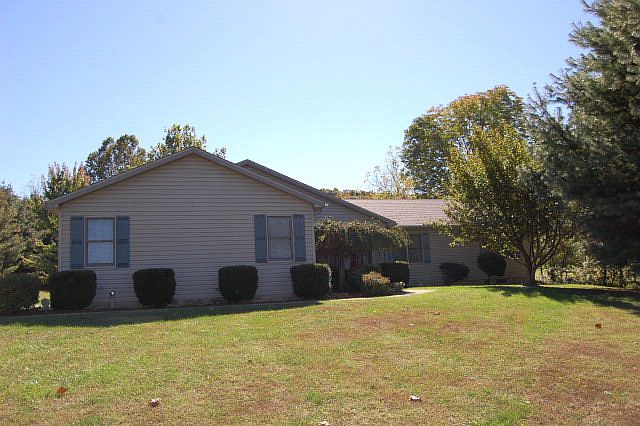 Beautiful custom built home with comfortable and spacious living on two acres. This home features 3 bedrooms each with a walk-in closet,2.5 baths, kitchen with breakfast bar and dining area,formal dining room,living room with vaulted ceiling and laundry on main level.Stained woodwork throughout with six panel wood doors. Full partially finished walkout basement, 2 car garage rear deck and storage building. Quiet location, great views..let's take a look. \