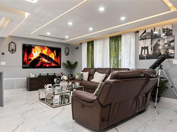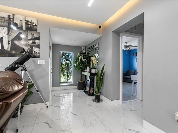 Absolute gorgeous home in Miramar, completely remodeled, with 48"x 24" porcelain flooring throughout, Very bright and spacious space, some concrete columns were replaced with steel, recessed base boards, fry reglete, cove lights ceiling, those lights are controlled from the phone, with modern kitchen cabinets, Quartz countertop, stainless steel appliances, Impact windows, large family room with plenty of light overlooking your own private backyard and with plenty of room to build a pool, now is with synthetic grass, spacious master bedroom and bathroom with large walk in closet, large utility room with brand new washer and dryer, , Roof was replaced 2017, A/C 2020 (5 Tons) with digital thermostat, Converted garage with updated modern bathroom. The light fixtures are not included.