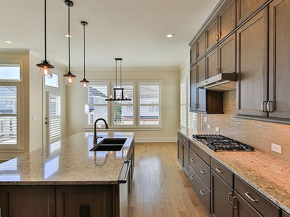 - Kitchen Features: Breakfast Bar, Cabinets Stain, Pantry, View to Family Room, Stone Counters, Kitchen Island