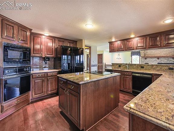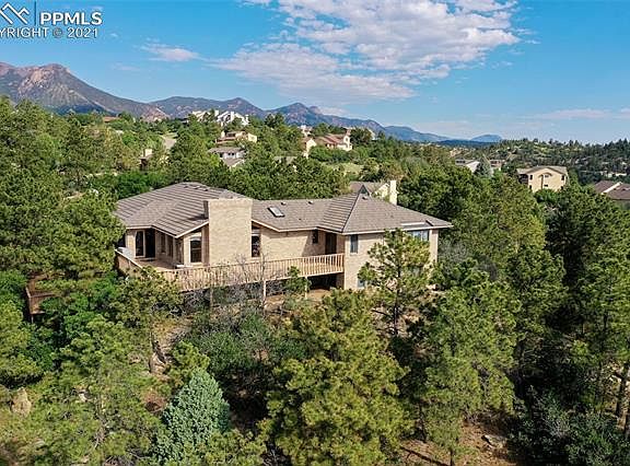 *Live in the trees, but still in town!* One of a kind, spacious 4 bedroom Rockrimmon home w/ spectacular panoramic views* Private flag lot w/ an abundance of parking* *Gourmet kitchen w/ granite counter-tops, island, breakfast bar, black appliances, ample cabinet space & beautiful wood floors* Informal dining area just off of the kitchen boasting a wall of windows w/ views & walk-out to the deck!* *Formal dining area just off the entrance w/ large window & wood wainscoting* The living area has a brick, gas burning fireplace, vaulted ceilings, ceiling fan and captivating city views from every angle!* Private, main level master bedroom w/ adjoining double walk-in closets, exceptional 5 piece bathroom boasting his and her vanities, linen closet, & separate free standing shower & jetted tub!* Master bedroom walks out to 40 x 27 wood deck w/ AMAZING VIEWS!*Huge main level laundry area boasting abundant granite counter-tops, lots of cabinets & drawers, sink, storage closet and more amazing views!* Bright main level office w/ built-ins!* Cozy family room w/ 2nd gas burning fireplace, built ins & walk-out* Bonus room w/ wet bar, sink, a designated space for a pool table & beautiful wood flooring* Additional three bedrooms located in the basement- one w/ large walk-in closet!* Sunroom w/ hot tub, sitting area & walk-out to deck!* Additional features including central vac, intercom for the inside and outside & a ceiling fan in every room!* Amazing lot with your own HOODOO rock formations* Exceptional Rockrimmon location that sees more neighbors on walks than vehicle traffic and is just a short drive to I-25!* In close proximity to award winning D-20 schools, close to shopping/dining and notables such as Ute Valley Park, and Blodgett Peak* 50 APM plug in for RV or camper and room at the top of the driveway for an RV or camper* Oversized Garage like 3 car in size This is a must see*