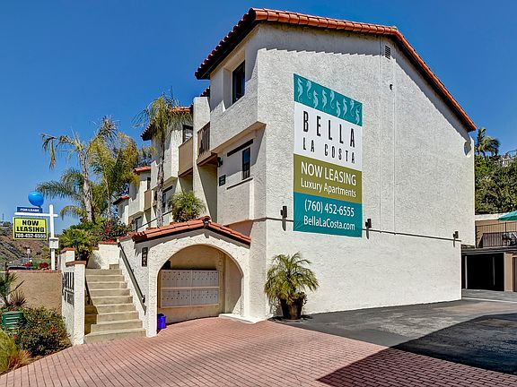 AVAILABLE NOW! BEAUTIFUL 2 BED 2 BATH. Reserved Parking and covered carports or Garages Available VIEW VIRTUAL TOUR Bella La Costa - Luxury Townhomes and Apartments- Stainless Steel Appliances Full Size Washer/Dryer In Unit On Site Management Swimming Pool/Jacuzzi/BBQ Grill Lounge Area Tucked in the quaint, seaside town of Carlsbad, California, Bella La Costa offers a peaceful, convenient location minutes from Onmi La Costa Golf Resort, beautiful beaches, lagoons, and resorts that remain some of San Diego's best kept secrets. Enjoy the charm, comfort, and luxury of our community and dynamic two-bedroom homes. We offer spacious and comfortable two-bedroom townhomes spanning three levels (complete with attached garage), as well as single-level two-bedroom homes with additional parking. Just a few miles from the coast, Bella La Costa residents enjoy South Carlsbad State Beach, a mecca for happy campers and beach lovers alike; while nearby Tamarack is the spot to ride the waves with local surfers. Fall in love with the outdoors amid picturesque scenery: tall bluffs, hypnotic lagoons, and sprawling green parks. Between bicycling, kayaking, surfing, and golf, the Bella La Costa lifestyle includes relaxing on the beach or alongside our sparkling pool, or indulging in the countless nearby shopping options. Bella's lovely homes are designed with thoughtful details yet enough flexibility and openness to make the space your very own. Homes include a private patio or balcony, custom cabinetry, a washer-dryer, energy-efficient appliances, dishwasher, ceiling fan, and plenty of storage space. For your convenience, we offer a parking solution, online rental payments, and a friendly onsite staff in addition to all the nearby neighborhood amenities, like parks and beaches. Resident pays for all utilities and renters insurance.