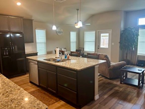 Beautiful, 3/2 home. Very clean open and airy floor plan. Large Master bedroom, large shower and lots of closet space. The luxury kitchen is upgraded with polished granite countertops and rich dark cabinetry. The kitchen island extends comfortably for breakfast or dinner bar eating. All Appliances look like new and are in perfect working order. Enjoy your quiet time in the luxury of a beautifully landscaped backyard with a finished patio for total relaxation. Home has a Water softener. To schedule your appointment call James Minimum 1 year lease. Tenant pays all utilities, electric, water, trash. One time cleaning deposit $200