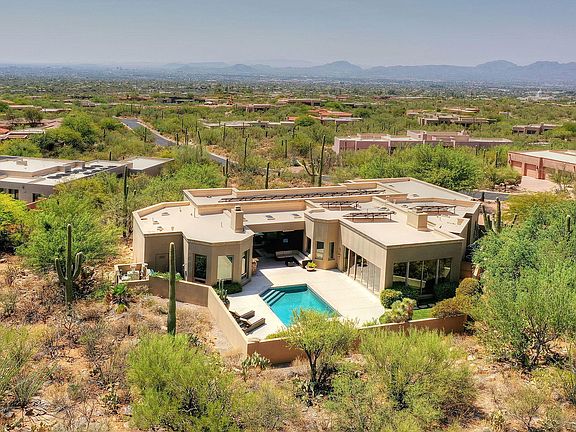 * Exceptional Quality & Style Displayed Throughout In This Contemporary 3 BR & 3BA w/Office Masonry Stucco Home on Private Lot in Guard Gated Pima Canyon Estates. The ''Open'' - Great Room Floor Plan Offers Panoramic Mountain & City Views Framed By Expansive Picture Windows & Telescoping Doors That Offer Indoor/Outdoor Living. Other Fine Features Include Travertine Floors, Island Kitchen w/ Stainless Appliances, Cherrywood Cabinetry, & Breakfast Nook, Oversized Laundry Room, & Spacious Master Suite. North/South Orientation Offers Idyllic Outdoor Living Featuring a Covered Patio w/Built in Heaters, Built in BBQ, Pebbletec Pool & Spa & Mountain Views! Upgraded & Fully Owned Whole House Solar Panels w/ Extended Transferable Warranty (See attached for details) . Priced to Sell.