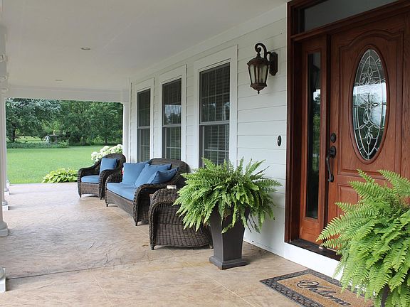- Exterior Property Features: Patio, Porch, Storms/Screens, Stamped Concrete Patio, Fire Pit, Invisible Fence