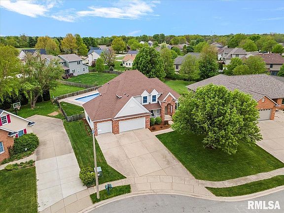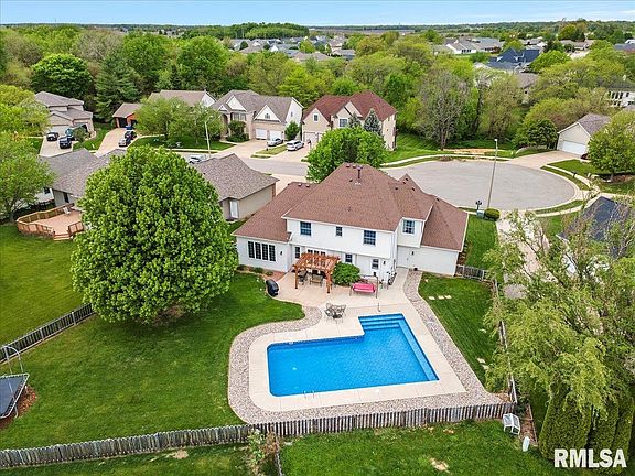 POOL, SPACE, UPDATES — this Piper Glen beauty has it ALL! 5 beds, 3.5 baths, Chatham schools, Springfield address. Wide plank LVP floors welcome you into a 2-story foyer. Lovely kitchen with granite, oak cabinets, stainless appliances & gas stove — plus a spacious peninsula for gathering! Office with built-ins, main floor laundry with outside door (perfect for pool days!), and a living room with backyard views you'll LOVE: stamped brick patio, pergola, fully fenced yard, and a HEATED SALTWATER POOL (2021) complete with an underwater bench! Upstairs: 4 big bedrooms including en-suite. Basement: family room, 5th bed, kitchenette, full bath + bonus room. Massive 3.5 car garage (800+ sqft!) with epoxy floors + lockers for a perfect drop zone. Major updates: roof, garage doors, 2 AC units, boiler handler (ALL 2023) plus new sump pump with battery backup this year. Whole house fan, 3-zone boiler heat, and pre-inspected for buyer peace of mind! Ready for summer fun? Join this Golf Cart Community today. This is THE ONE!