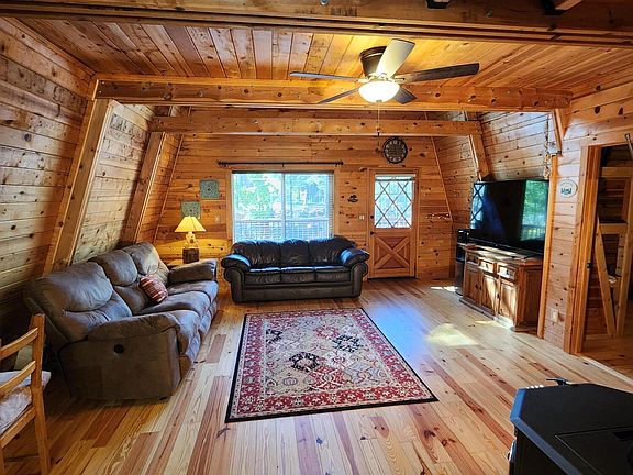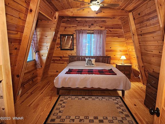 If you are looking for a rustic A- Frame cabin with modern comforts, this is the cabin for you! Located in Pinetop Country Club, this 3 bed 3 bath cabin with Central Heat and Air Conditioning sits on .4 acre with apple and cherry trees set up on an automatic drip system. The downstairs layout has a split floor plan with one bedroom, one bathroom and one master bedroom. The upstairs floor plan consists of one bedroom, one bonus room that is currently used as a sleeping area and one large bathroom with walk in shower. Warm up and enjoy the ambience of the burning flames in the pellet stove on cold winter evenings. Fully furnished with two new king sized memory foam temper-pedic mattress beds downstairs. Extensive remodeling and newly built addition that was completed in 2022 includes a large double door storage shed with lots of shelves and a large covered patio deck. Access the forest on marked trails nearby to enjoy walks or bike rides. Don't miss out on this amazing cabin!