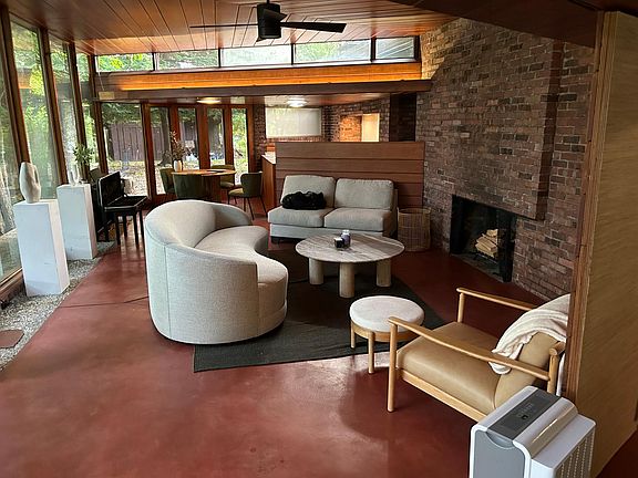 Welcome to a true architectural masterpiece nestled on the banks of the serene Thornapple river. This exquisite offering showcases the brilliance of renowned influence of architect FLW, whose visionary designs have forever changed the landscape of modern architecture. Meticulously restored and thoughtfully furnished, this residence captures FLW's distinct principles of organic architecture, where nature seamlessly blends with the built environment. Overlooking a crest of the Thornapple River, this home is an oasis and peaceful setting for creatives, writers, musicians, or those seeking quiet refuge. 6 or 12 month lease.