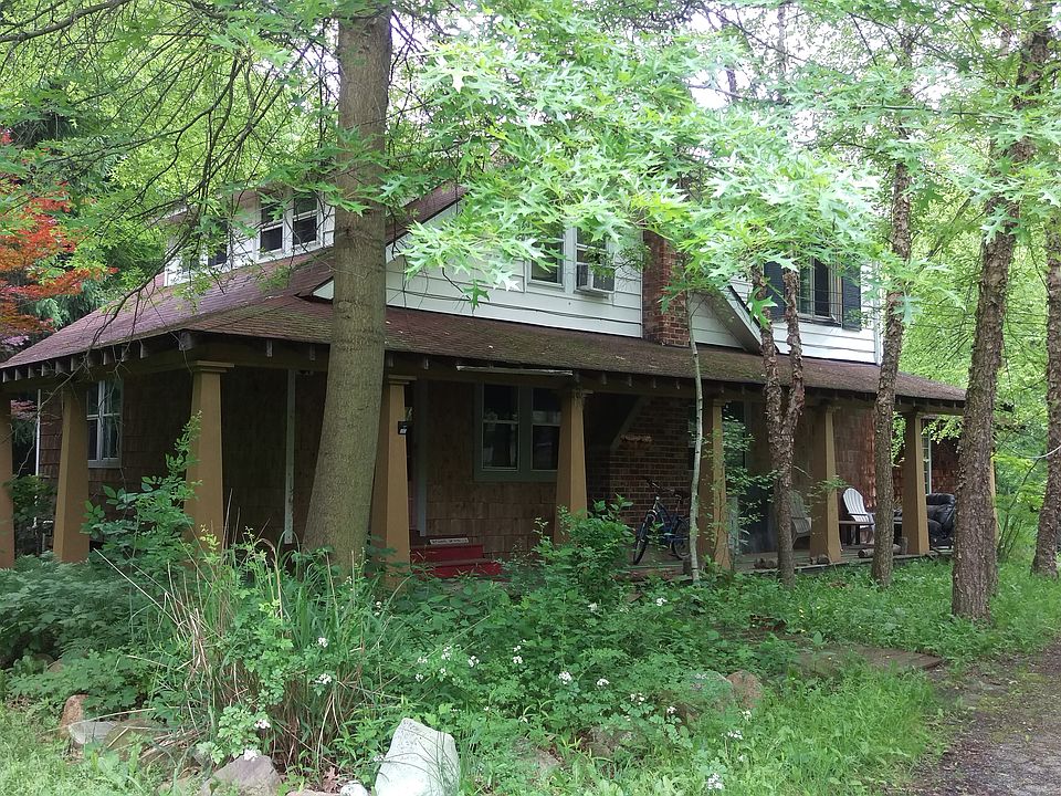 Craftsman/Prairie Style arts & crafts house that needs some finishing & a kitchen. Sold As Is. Could be a wonderful retreat. Sits on nearly 7 acres, wooded & beautiful. Close to Warren Woods State Forest & just a few miles to Chikaming Township beach access. Very nice parcel for the price with many rare trees. 30 x 40 pole barn, huge great room with 2 stained glass windows & 2 walls of views. Property can be split, per township. Build a new house in back & rent existing--lots of potential.