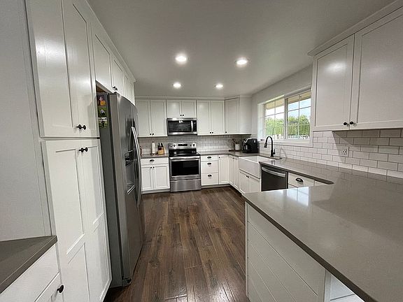 Cozy, well maintained Tri-level home on irrigated acreage with a 30x60 shop and fenced pasture. Home has 3 bedrooms and 2.5 bathrooms with a large finished basement, office, laundry room and attached 2 car garage. The kitchen has been beautifully updated with timeless finishes to fit any style. New heat pump installed 09/2021. There is also a fireplace and a wood burning stove. It is on a private well and septic. Large front & back yards with plenty of shade trees, garden shed and a small fenced area with fruit trees. Buyers agents welcome! Property is two separate tax lots. Home is occupied, so do not drive down driveway! Set up a showing via e-mail: Click “property owner” below to email us!