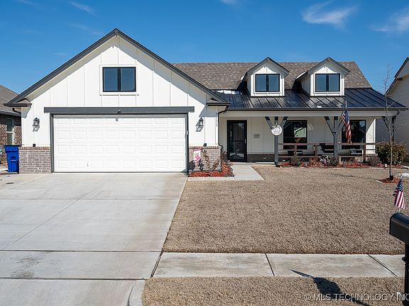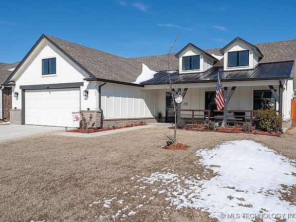 Welcome to your stunning modern farmhouse-style home in the highly sought-after Magnolia Ridge I community of Owasso. Built in 2021, this meticulously maintained residence offers thoughtfully designed living space, featuring three bedrooms and two bathrooms on a beautifully landscaped lot. Step inside to an inviting open-concept floor plan, where the spacious living area seamlessly connects to the kitchen. The kitchen is a home cook's dream, boasting a large island with quartz countertops, stainless steel appliances, and ample storage, perfect for both everyday living and entertaining. Designed for privacy, the split-bedroom layout places