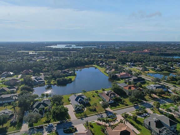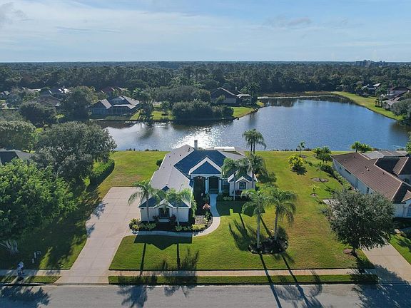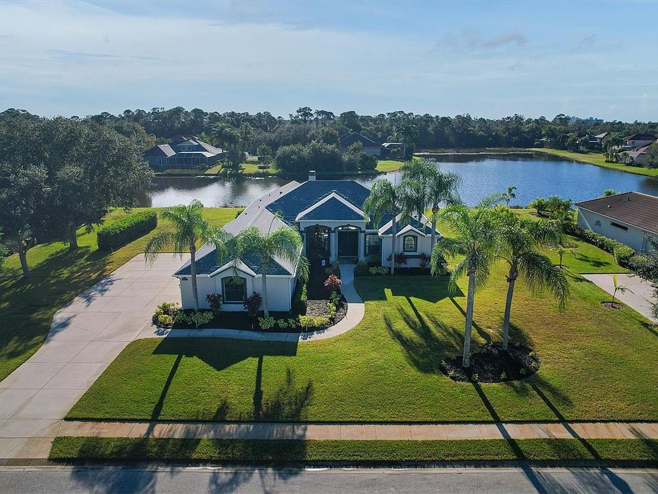 Poignantly positioned to overlook vast lake views, this magnificent and spacious home is a testament to River Club living with quality, privacy and tranquility. The open, bright and accommodating floorplan meets the entire family's needs for the day-to-day and gathering for special occasions. Situated on a half-plus-acre lakefront setting, Florida curb appeal and a five-car side-load garage welcome you to upscale relaxation. Through the double door entry, the combined living and dining rooms provide an ample arena for indoor-outdoor living with a triple sliding glass door opening to the screened lanai. Double doors just off the foyer reveal a secluded den/office for a versatile space of study, fun or meditation. With additional sliders and an aquarium window wrapping around the screened lanai to showcase the shimmering lake beyond, the living room transitions into the grand kitchen that flows to the delightful family room. Prepare meals with plenty of workspaces, featuring a sprawling island with an elevated breakfast bar for casual meals, while the fireplace crackles and provides ambiance in the family room. Efficiently located to the kitchen is the considerably sized laundry room including shelving and a utility sink. Guests will relish their long weekends at your new home with two generous bedrooms separate from the master suite boasting more sliders that lead to the lanai, a walk-in organized closet and en-bath presenting a floating vanity, glass walk-in shower and soaking tub. Outside, the epitome of serene enjoyment is found where you can swim in the pool, serve drinks from the wet bar and watch the sunset over the water. Recently renovated and upgraded, the peace of mind and work are already granted as well as stellar amenities in River Club, including a public golf course, clubhouse, dining, tennis courts, community pool and low HOA fees. Welcome to living your best life.