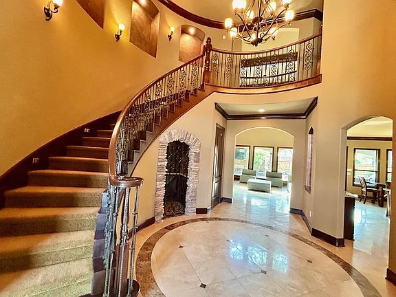 Stunning custom residence in the exclusive gated community of Augusta Creek Estates, with private access inside Augusta Pines Golf Club. This home blends timeless elegance with modern luxury, showcasing exquisite craftsmanship throughout travertine floors, extensive stonework, and custom details at every turn. Entertain in style with a private wine cave, a spacious media room on the first floor, and an elegant chef's kitchen featuring custom cabinetry, dual kitchen islands, a butler's pantry, walk-in pantry, and breakfast room. The first floor also includes a private secondary bedroom with en-suite bath, ideal for guests or multigenerational living. Upstairs, enjoy a complete game room with its own wet bar, plus two additional bedrooms one with a private bath and the other with a shared bath off the game room. Step outside to your personal oasis: a covered terrace overlooking the pool and spa, perfect for relaxing or hosting gatherings.