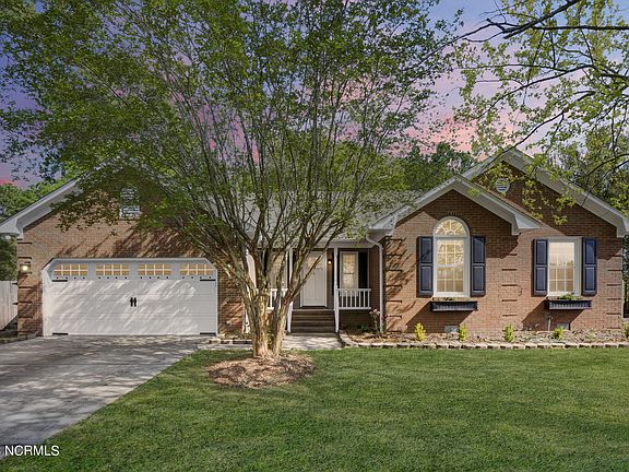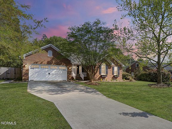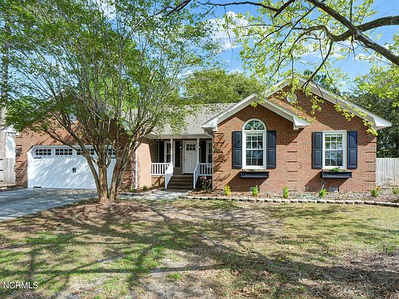 An amazing and rare find, this stunning brick ranch home is minutes from Mayfaire, Wrightsville Beach, and everything Wilmington has to offer, yet tucked away on an incredible half acre homesite with mature trees offering privacy and serenity. The living room is the gathering place with a gorgeous fireplace, cathedral ceilings, and beautifully updated flooring. Impressively modernized, the kitchen boasts crisp painted cabinets, quartz countertops, farmhouse sink, stainless appliances, pantry, and light-filled breakfast nook with door to the covered patio, a perfect place for your morning coffee to start your day or unwind in the evening with beverage of your choice. The owner's suite will please you offering a tray ceiling, walk-in closet, and ensuite bath with a dual vanity that adds appeal and style to the space! Two additional bedrooms with ample closet space are a neutral slate ready for your personal decorating touch. Renovated from floor to ceiling, the guest bathroom has an amazing walk-in shower that you will love! Extra storage space is found in the laundry room with cabinetry, in addition to the two-car garage and oversized shed. The curb appeal of this home with mature trees is not to be left unsaid, and the back yard is completely fenced with covered patio and deck, making this home a rare gem and turn-key option you will not want to miss! Call today!