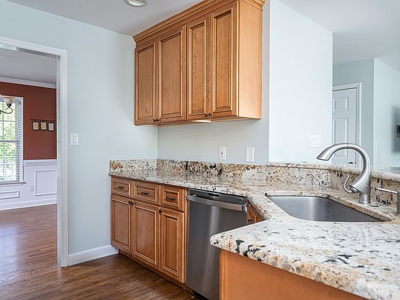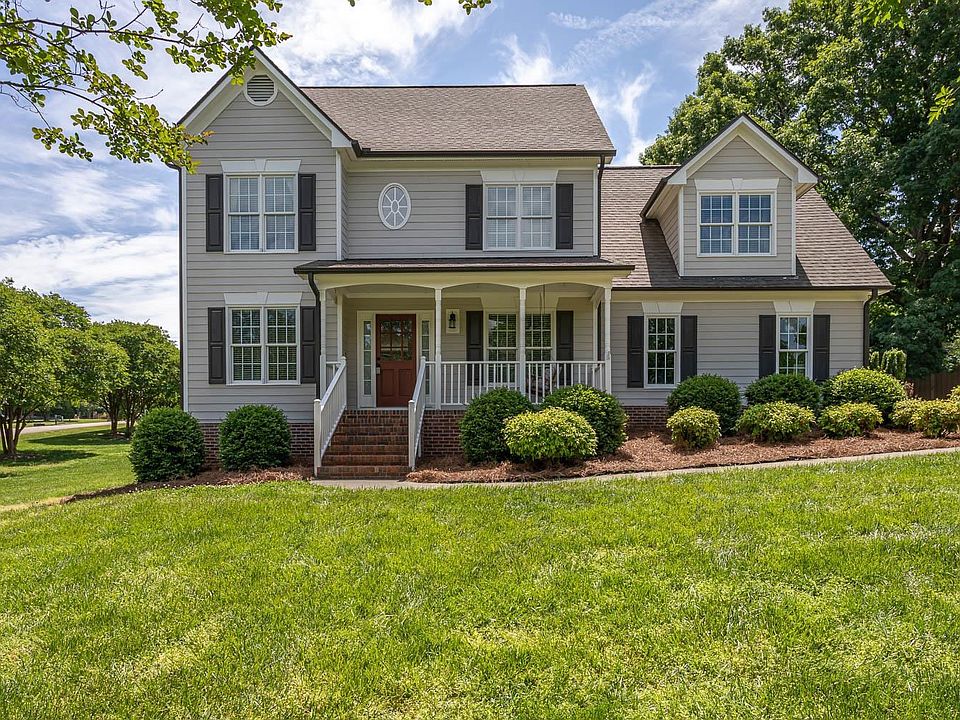 Well-maintained home in prime Wake Forest location! Hardwood floors greet you at the door and span across the main level. Kitchen is complete w/granite countertops, stainless steel appliances & an abundance of cabinets. Breakfast room is bright & overlooks a spacious backyard. Owner's suite offers new carpet, huge walk-in closet, garden tub, separate shower, double vanity, & linen closet. In the dining rm, you'll find elegant touches like wainscoting & crown molding. The living rm/front office is a versatile space w/ built-in cabinets/counters. Secondary bedrooms have large walk-in closets. Finished bonus room could be game/theater rm, home gym, 4th bedroom - you name it! Mudroom has built-in desk providing addtl workspace. Laundry room equipped w/ sink & cabinets and flexes for either a stackable or side by side washer/dryer. Exterior features freshly painted fiber cement siding, large wood deck, custom stone fire pit, sealed crawlspace, side entry 2-car garage, all on nearly 1 acre with natural privacy! Chickens can convey to buyer. Easy access to highways, shopping & restaurants!