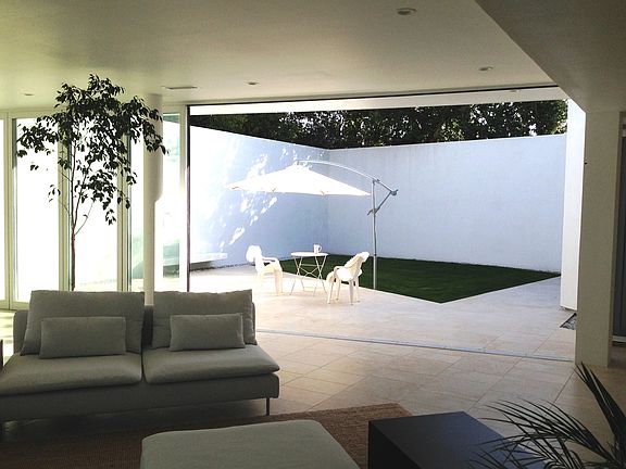 Designed as his personal residence, this stunning and breathtaking architectural 3 bedroom and 2 bathroom spotlight home has been completely remodeled and refinished. Nestled on a quiet and large cul-de-sac in the Stockdale Estates, this tranquil retreat offers everything for the contemporary buyer and sets itself apart from traditional architecture. With roughly 2,350 square feet of interior space, this homes spacious layout feels inviting, inspiring and functional. The true centerpiece of this property is the expansive pavilion living room which invites incredible light and openness through 60 feet of engineered sliding glass doors which lead to two contiguous, large high-walled private courtyards measuring 1,040 and 1,215 square feet respectively. Each of the three bedrooms is defined by clean lines, built-in closets, recessed lighting and 8 feet double glazed doors that let one reach out to separate garden areas. Kitchen amenities include a Viking stove, stainless steel sink basin, built-in oven and microwave which all flow perfectly to bright large areas for entertaining inside and outside. With an emphasis on safety and closeness, Stockdale Estates offers a neighborhood with mature tree-lined streets, located in the hub of town with easy access to any area and in proximity to popular Stockdale Elementary School and many new shopping centers and retail. There are no limits to the impressions and delights this home offers for either the entertainer/entrepreneur or family. Come, enjoy, relax and live in your own peaceful retreat.