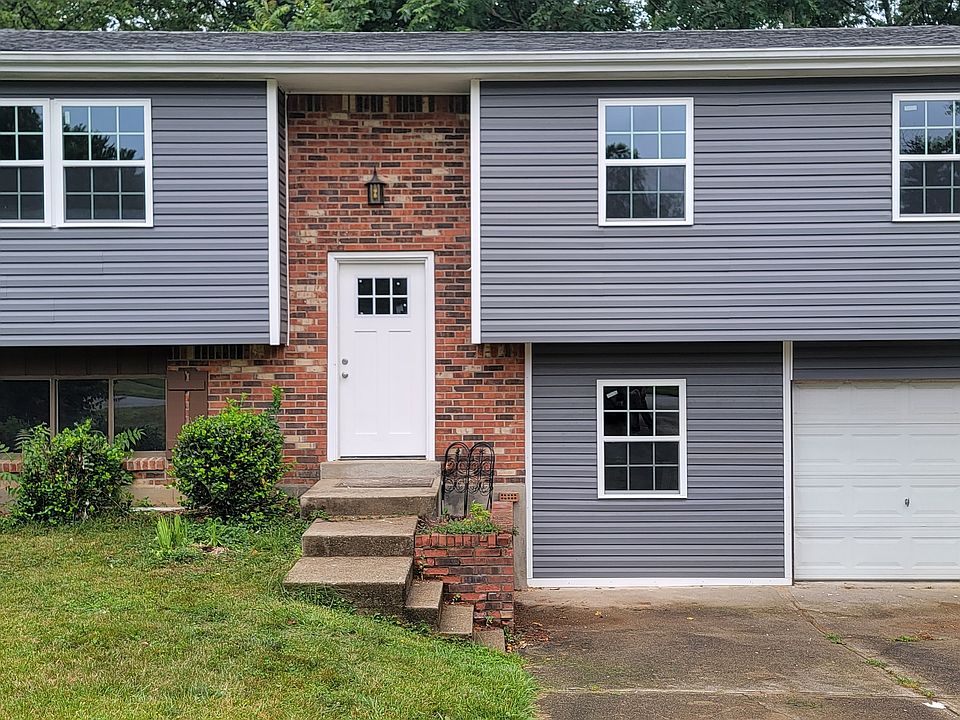 Welcome to a great neighborhood in south Oldham County. This 4 bedroom 2 bath house features freshly renovated kitchen, showers, and flooring throughout. The back deck opens up to relaxing views of nature perfect for grilling out or sipping coffee in the morning! The basement has been updated with a bedroom, and opening up the main room which can also be used as an office/playroom or an additional 5th bedroom. The basement bathroom has also been updated with a clean walk-in shower and also includes laundry hookups. Lease term is 1 year. Renter is responsible for utilites and water. Deposit and first months rent are due at signing. Lease is for 1 year. No smoking allowed.