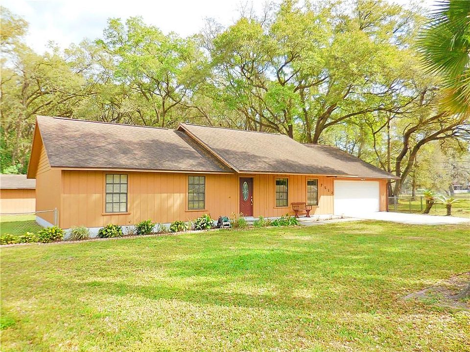 BEAUTIFUL HOME on an almost ½ ACRE FENCED LOT NESTLED AMONG THE OAK TREES! This excellently maintained home features 3 bedrooms, 1.5 baths, a family room overlooked by an attractive kitchen, a flex room offering the option of a formal living or dining room and an attached 2 car garage along with a separate detached 36x24 garage. The galley style kitchen offers an abundance of oaks cabinets highlighted by crown molding, Corian countertops, undercabinet accent lighting, breakfast bar and nook seating, a walk-in closet pantry and all the appliances stay! The master bedroom space is plentiful with a wall to wall closet being an added bonus. The two additional bedrooms each offer plenty of closet space too. The Florida room is an added bonus and a great place to relax. The large outdoor concrete patio offers value and versatility. The gated and fenced back yard allows pets to roam free and the added bonus of a separate garage offers a variety of potential uses and the attached oversized 2 car garage includes a sizable laundry area, convenient storage options, and a half bathroom! NO BACKYARD NEIGHBORS, NO HOA and NO DEED RESTRICTIONS! Add this one to your list of homes to see!