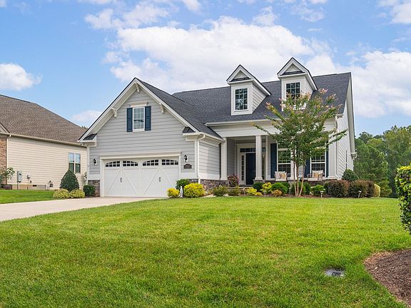 Welcome to 7512 Hasentree Way in the prestigious Hasentree Golf Community! This home welcomes you with an abundance of natural light in its open, one-story floor plan. Step into the tranquility of a three season porch and explore the outdoor haven of a custom deck and patio, embraced by lush landscaping, private fence, and expansive golf course views! Inside, indulge in upgraded features including custom-made curtains and blinds, contemporary ceiling fans, and upgraded glass and tile flooring in the porch. The kitchen shines with pendant lighting, while a primary bedroom closet renovation enhances organization. There is no shortage of storage with the walk-up attic! This home embodies thoughtful design and comfort at every turn. Make 7512 Hasentree Way your dream home. Welcome to refined living!