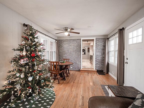 Discover this delightful home, perfectly nestled on over an acre of prime west-side real estate. Step inside to find a spacious living room with stunning hardwood floors and a cozy wood-burning fireplace, creating a warm and inviting atmosphere. The kitchen boasts granite countertops, an island with a breakfast bar, a tiled backsplash, and a stainless steel sink with an updated faucet. Each of the three bedrooms offers hardwood floors, with the primary bedroom featuring a picturesque window overlooking the serene front yard. The second bedroom provides a view of the secluded backyard, while the third bedroom includes dual closets for added storage. A beautifully updated full bath with a shower/tub combo and modern vanity is conveniently located between the bedrooms. Head downstairs to the finished basement, the ultimate hangout spot! Whether you're hosting Monday Night Football or enjoying a quiet movie night, this versatile space fits the bill. It even includes a full bath with a walk-in shower. Additional unfinished space ensures plenty of storage for all your needs. Outside, you’ll love the oversized 2-car garage, an additional detached 1-car garage, and a storage shed. Relax on the open patio, perfect for bonfires, while enjoying the tranquil views of your expansive 1+ acre property on Evansville's west side. This charming property offers the perfect mix of peaceful country living while located only a few minutes from all the conveniences.