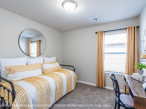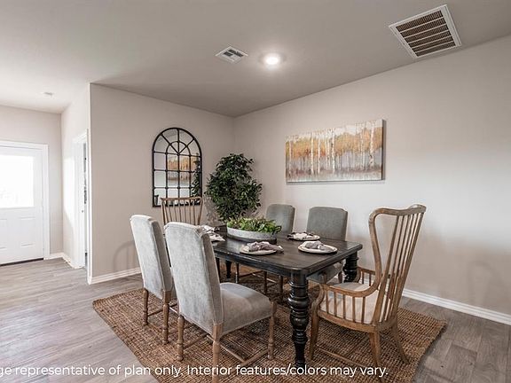 The Justin is a charming single-story, featuring 1,850 square foot, 4 bedrooms, 2 bathrooms, and a 2-car garage. The kitchen features Stainless Steel Whirlpool appliances, large walk-in pantry, and a central island overlooking the living area and oversized dining area off to the side. Main bedroom is located at the back of the house with ensuite featuring a glass enclosed shower and a freestanding soaker tub. This home sits on an interior lot and is complete with large back patio, sprinkler system, wood privacy fence with metal posts, and full sod. This home is currently under construction and is estimated to be complete around August of 2023.