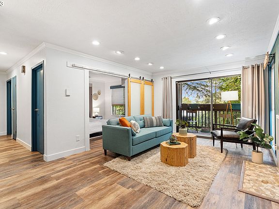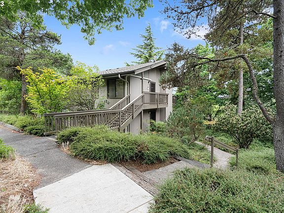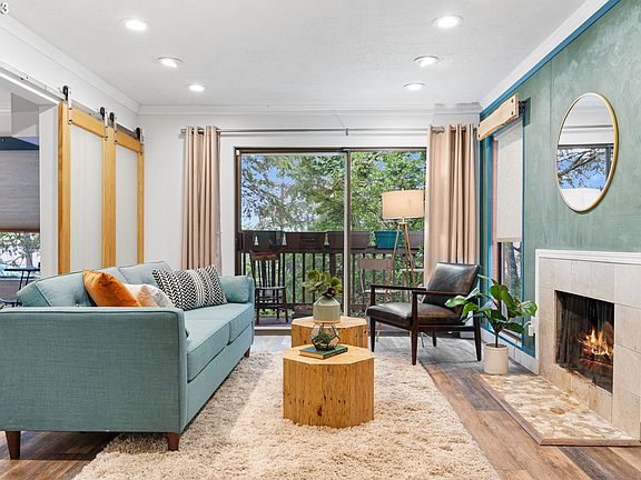 Escape to the serene surroundings of this Sylvan Heights condo, nestled in the picturesque West Hills. This inviting abode boasts modern updates throughout surrounded by natural beauty.Step inside to find an open living area with luxury vinyl plank flooring, recessed lighting, and crown molding, setting the tone for a stylish and welcoming atmosphere. The addition of new LED smart lighting, a smart door lock, and a smart thermostat elevates the condo's efficiency and ease of living.Unwind in the living room featuring a wood-burning fireplace. A sliding door opens to a deck offering tranquil territorial views and a private storage space.The well-appointed kitchen overlooking the dining room showcases granite counters, a custom copper backsplash, stainless steel appliances, and a breakfast bar for casual dining.The primary bedroom is thoughtfully located at the back of the condo to provide privacy. A versatile second bedroom with a Murphy bed can easily transform into an office, offering flexibility to suit your lifestyle needs.The bathroom features a butcher block-topped vanity and a stylish copper sink. There is potential to add in-unit laundry with a stacked washer and dryer in the front hall closet.Additional amenities include a window A/C unit, 1 assigned carport parking space, additional uncovered parking spaces for guests and residents, and 2 shared laundry rooms just across the parking lot. The Sylvan Heights Association's amenities include an outdoor pool, indoor hot tub, sauna, gym, tennis courts, and a club room with free wifi and a kitchen.