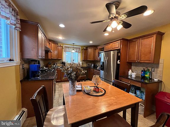 Come see this stone colonial home in Elkins Park. Hardwood floors throughout. Tons of living space! Three good sized bedrooms and one smaller bedroom could also be office. THREE FULL BATHS. Two bedrooms have their own bathroom! Formal dining and living rooms. Updated kitchen with granite counters, stainless appliances and commercial grade gas oven/range. Huge family room with wet bar! Raised stone patio overlooking fenced area of the yard. Access to the patio from both kitchen and the family room. Replacement windows throughout. Built-in shelves and cabinets in bedrooms. Lots of closets space. Well maintained boiler and updated HVAC on Second floor. Two zone, natural gas heating. No Oil! Half bath in basement along with semi finished room and garage access.