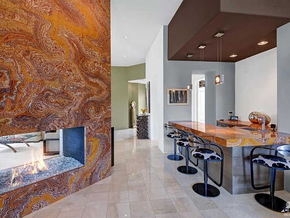 Views, Private Pool & Furnished! Awe-Inspiring 13th Fairway, Green & Mountain Views are yours from this ever popular Spyglass floor plan. The double door entry welcomes you into this tastefully appointed home of Contemporary Design elements & open plan perfect for entertaining; double sided Granite Fireplace is the stunning focal point, Kitchen w/center Island, Living Room, Den w/ Granite Wet Bar. While dining in the Dining Room, the slider opens to a soothing Waterfall. Features: Granites, Plantation Shutters, Solar Shades & Art Lighting. A lavish Master Suite w/ spa-inspired bath, shower & built in walk-in closet, two Bedrooms featuring en suite baths, one has built in Office & Powder Room complete the home. What better setting to entertain w/ the phenomenal views from your flagstone Patio enjoying your own private pebble-tec Pool, Spa & Mountains beyond. Double garage plus golf cart. A premiere Indian Wells location ~the Desert Lifestyle, 18 Hole Golf, Dining, Fitness & Tennis.