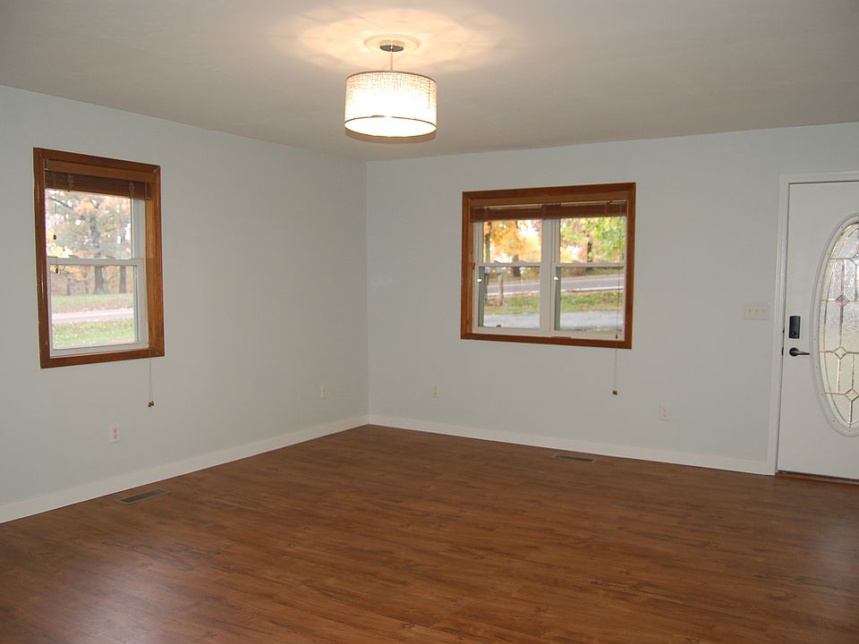 Remodeled 2 bedroom 2 bath home in Blair Oaks School District. New updated bathrooms featuring new custom cabinets & quartz counter tops. Master bedroom has large walk-in closet with barn doors and double sinks in master bath. Kitchen includes built-in banquette & all new stainless appliances . Main floor laundry hookups. Deck spans entire back of the house. Full unfinished basement for storage and nice quiet setting. 1 year lease required. No smokers or pets. Credit score must be 650 or higher.